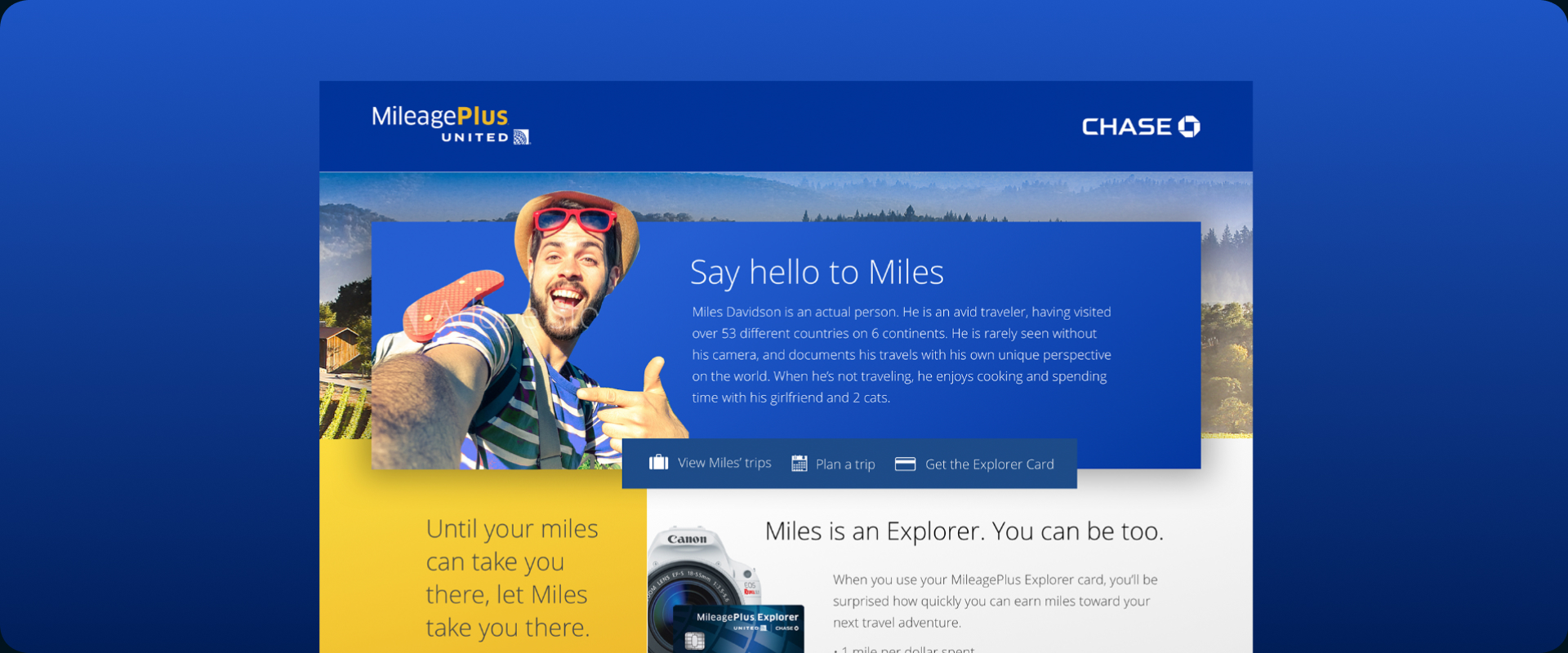 I worked with Chase for several years as a liason to United and the MileagePlus loyalty relationship, helping to introduce Chase’s advertising network to the United Airlines app and leading the design and build of a variety of revenue-driving programs for MileagePlus.