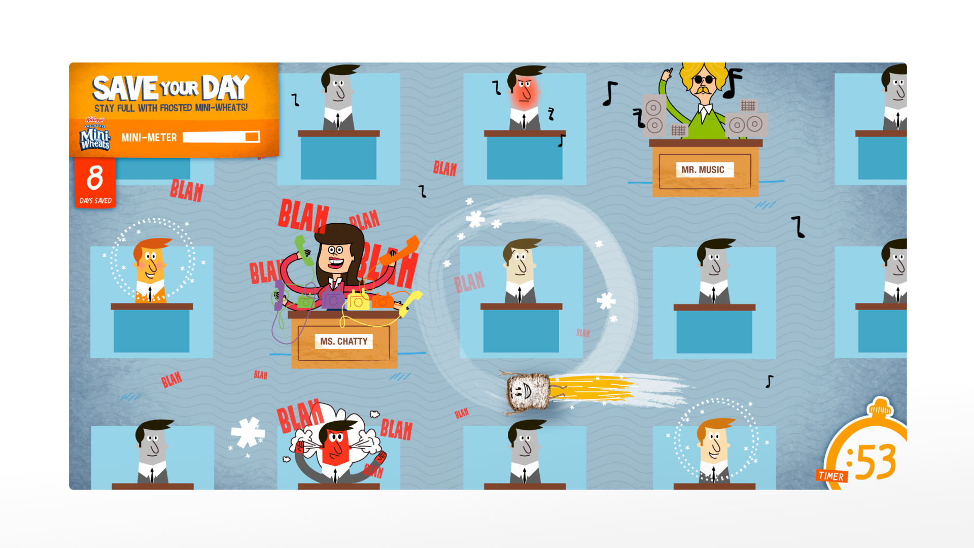 Instead of moving toward one side or the other, we decided to own Mini-Wheats’ position as the cereal that gives you the fiber and energy you need to take on your day, while having a little fun at the same time. We created digital advertising and online gaming that allowed users to have a great time with the brand, but also reminded them of the real energy benefits of starting their day with such a fiber-packed cereal.