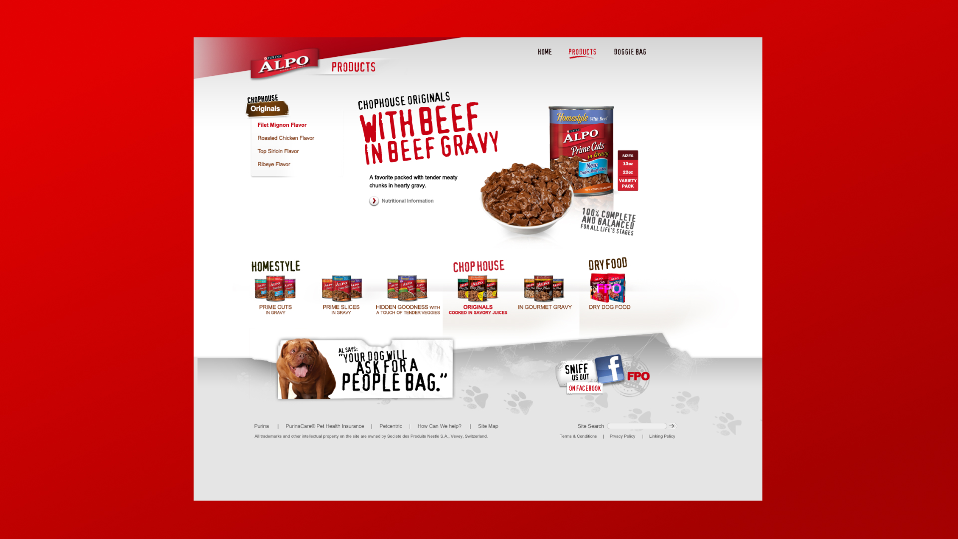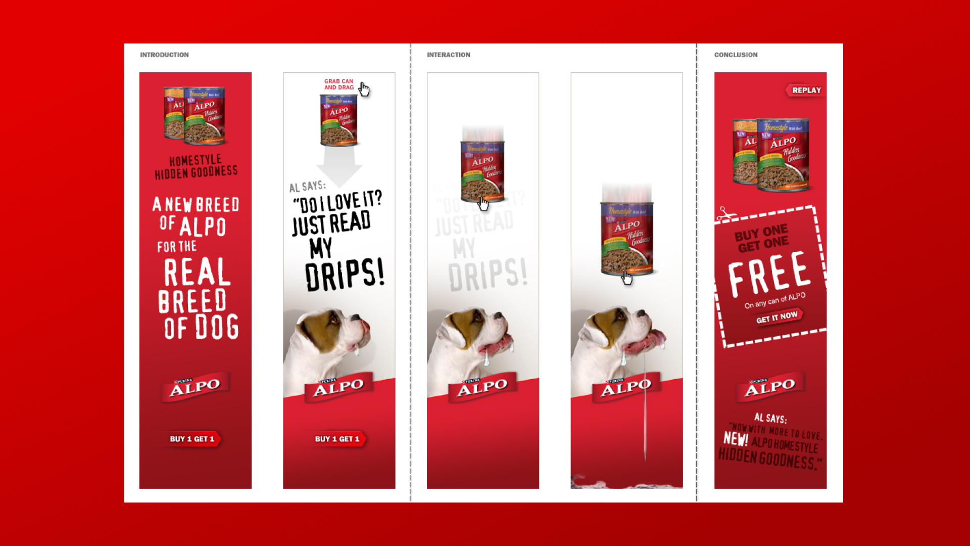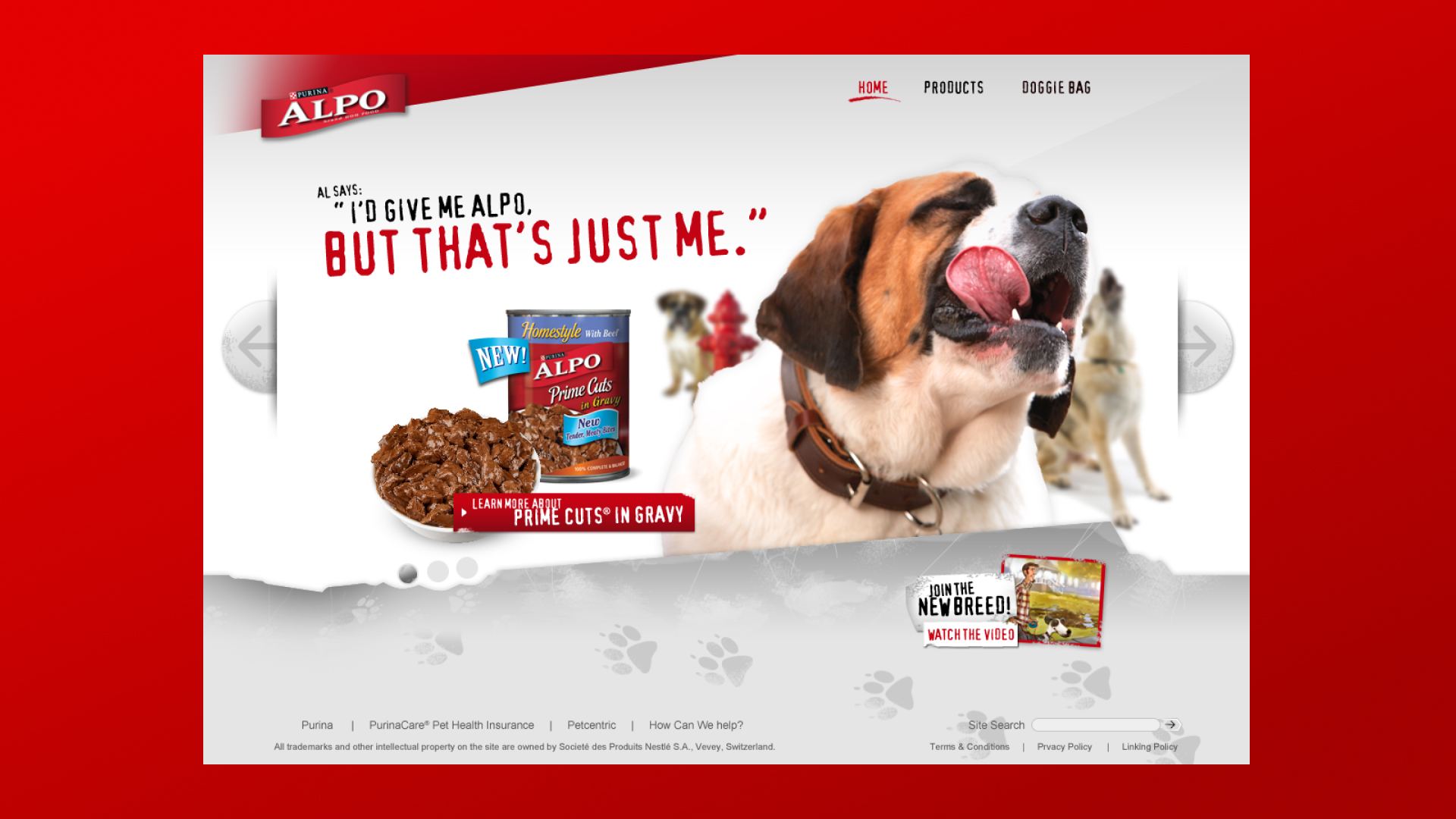 Our team at Razorfish worked to reposition the brand with the “Real Dogs” digital campaign—pushing Alpo not as a primary diet option, but instead an extra treat, and an honest answer to the question “what do real dogs really want to eat”? We created a new website, digital banners and promotional campaign to help position the new brand movement.