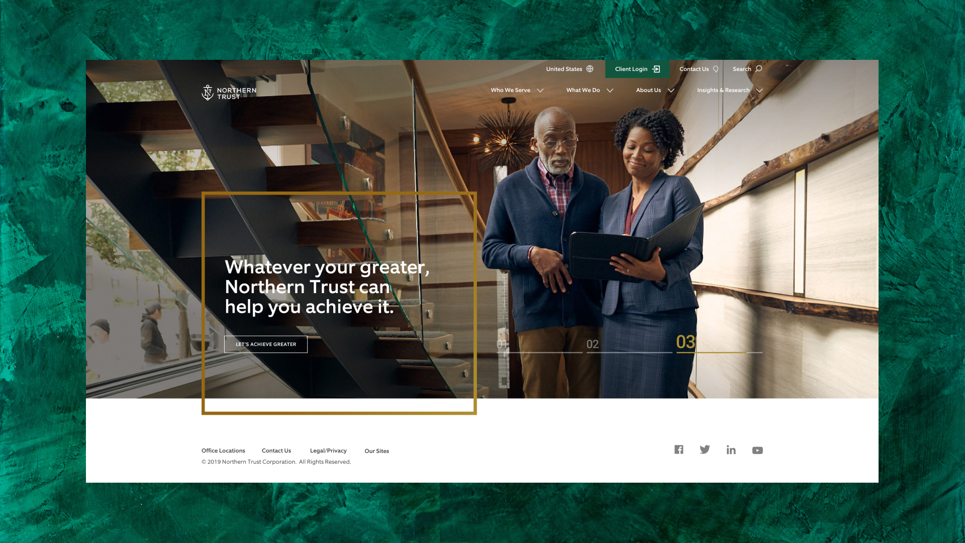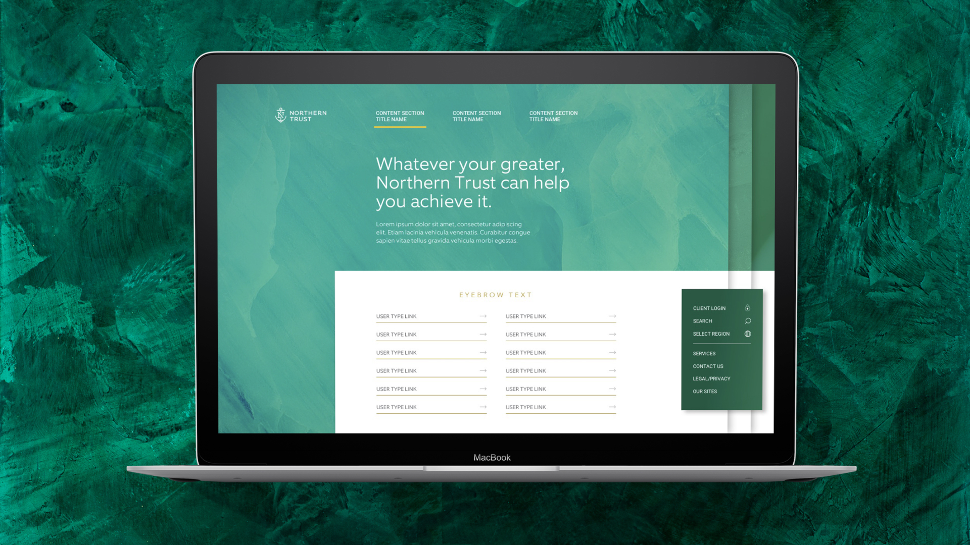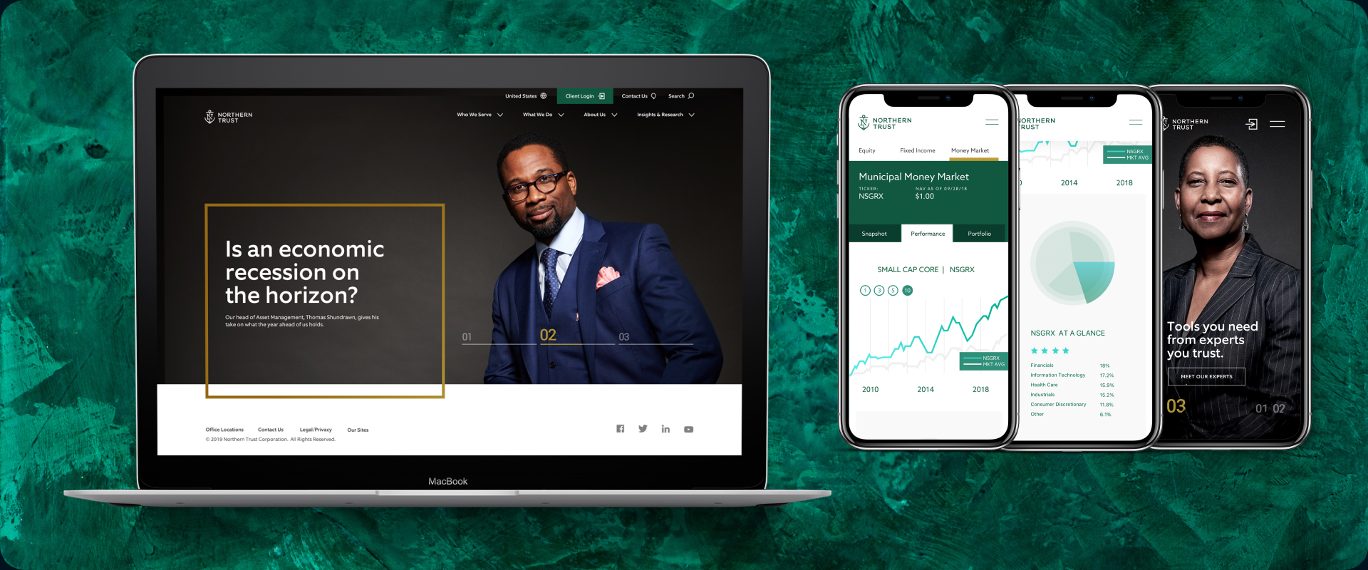 Our team drove a deep digital discovery culminating in important new insights, which led to boundary-breaking and category leading architecture and visual design solutions aimed at 9 distinct audiences across the financial universe. Key checkpoints included reviews with NT’s global CMO, as well as CMO leadership of its 3 financial divisions (asset management, asset servicing, wealth management). Every detail was considered in this project and no stone left unturned.